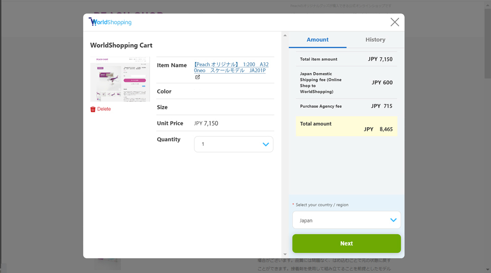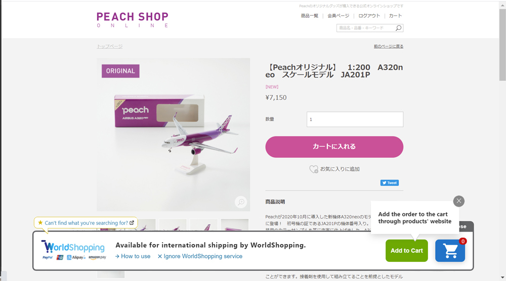"Add to Cart" button will be shown on the bar if the item is available for oversea shipping